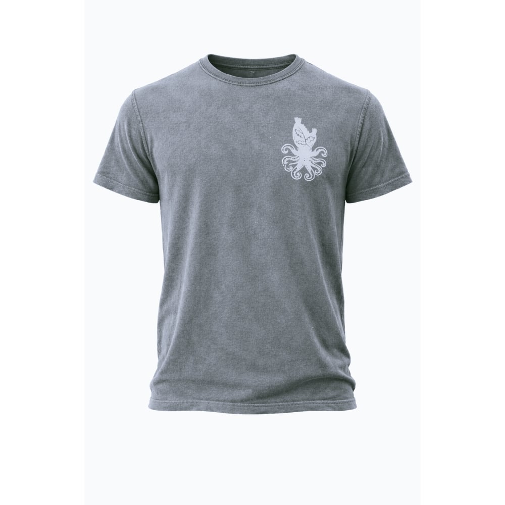 Camisola 100% algodón con serigrafía artesanal en costas e mesmo deseño en pequeno en lado esquerdo do peito